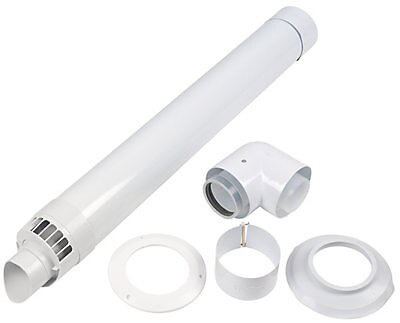 Комплект для горизонтального прохода предназначен для прохода через стену или крышу. Данный участок является коаксиальной системой «воздух-продукты сгорания» или «труба в трубе» с внутренней трубой диаметром 80 мм для отвода продуктов сгорания (дымовая часть) и внешней трубой диаметром 125 мм для подвода воздуха (воздуховод).