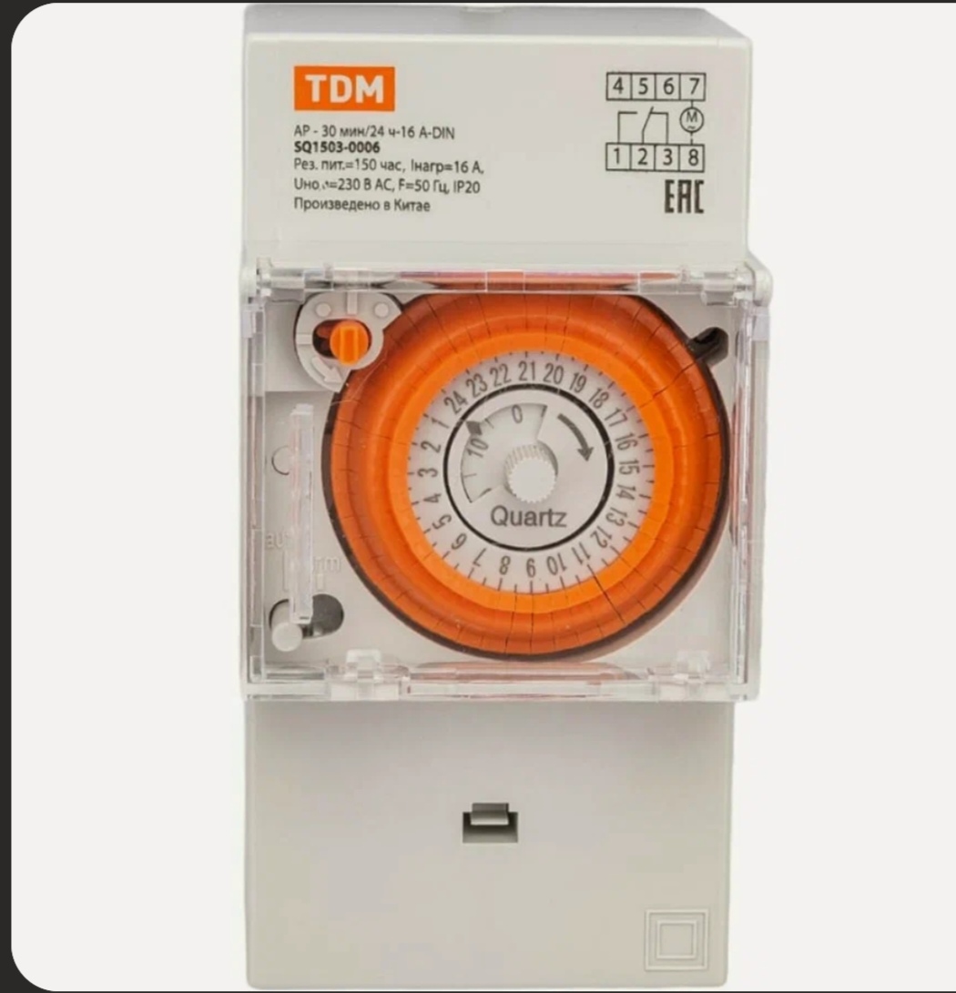 Аналоговое суточное реле TDM АР-30мин/24ч-16А-DIN, 3 модуля, SQ1503-0006