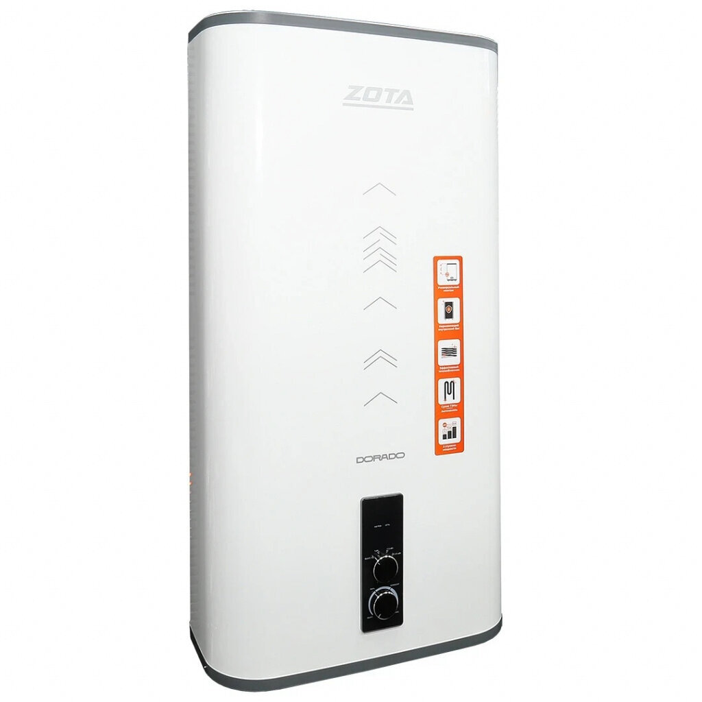 Накопительные водонагреватели ZOTA серии DORADO - это плоский водонагреватель комбинированного нагрева с универсальным (вертикально-горизонтальным) монтажом. Главной особенностью данного водонагревателя является «сухой» ТЭН из нержавеющей стали.