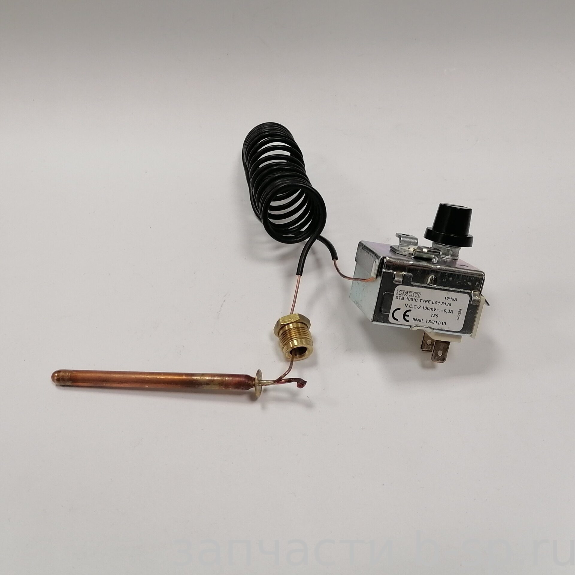 Капиллярный термостат принцип действия которого основан на расширении жидкости, имеет позолоченные контакты с низким сопротивлением, применяется в системе безопасности энергонезависимых отопительных газовых котлов марки "Baxi" и предназначен для аварийного отключения и блокировки подачи газа при полном или частичном засорении дымохода.
