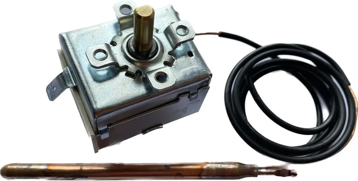 Регулятор предназначен для контроля температуры в котлах. При резком повышении температуры датчик срабатывает и размыкает электрическую цепь. Принцип измерения основан на использовании расширения жидкости, содержащийся в капиллярной трубке, которая находится под воздействием температуры, изменяет свой объем и вызывает отклонение указателя на фоне циферблата термометра.